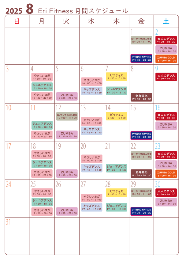 2025年8月☆月間スケジュール