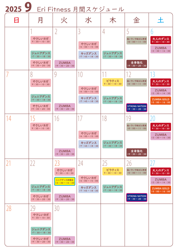 2025年9月☆月間スケジュール