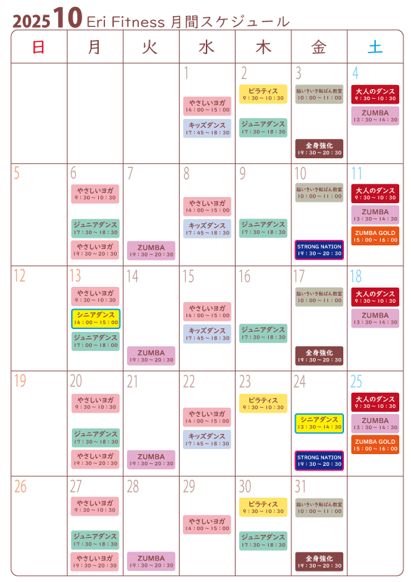 2025年10月☆月間スケジュール