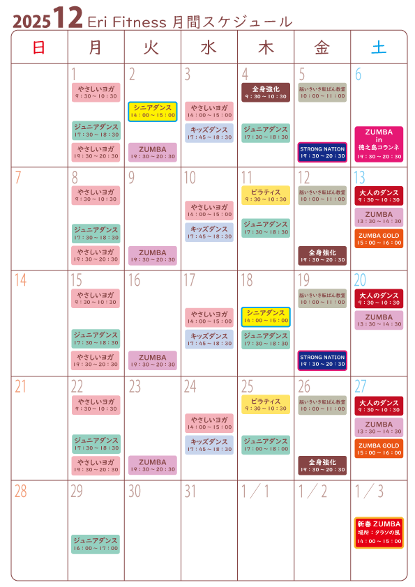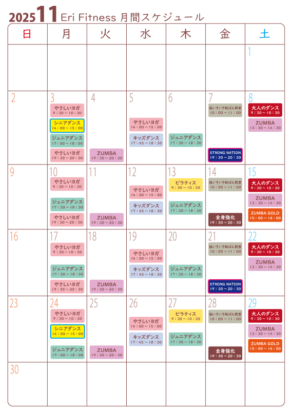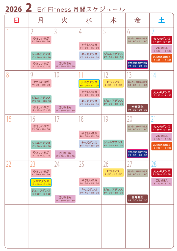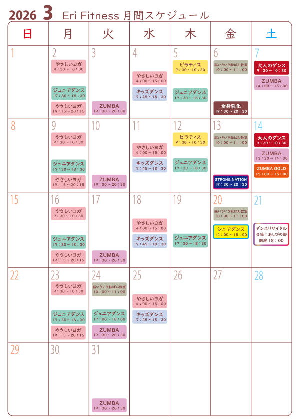 2020年6月より週間スケジュール表を改め、月間スケジュールの方式へ変更しました。